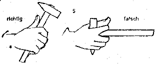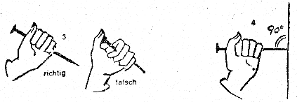 Ergreifen Sie den Nagel mit der linken (Linkshänder: rechten) Hand;